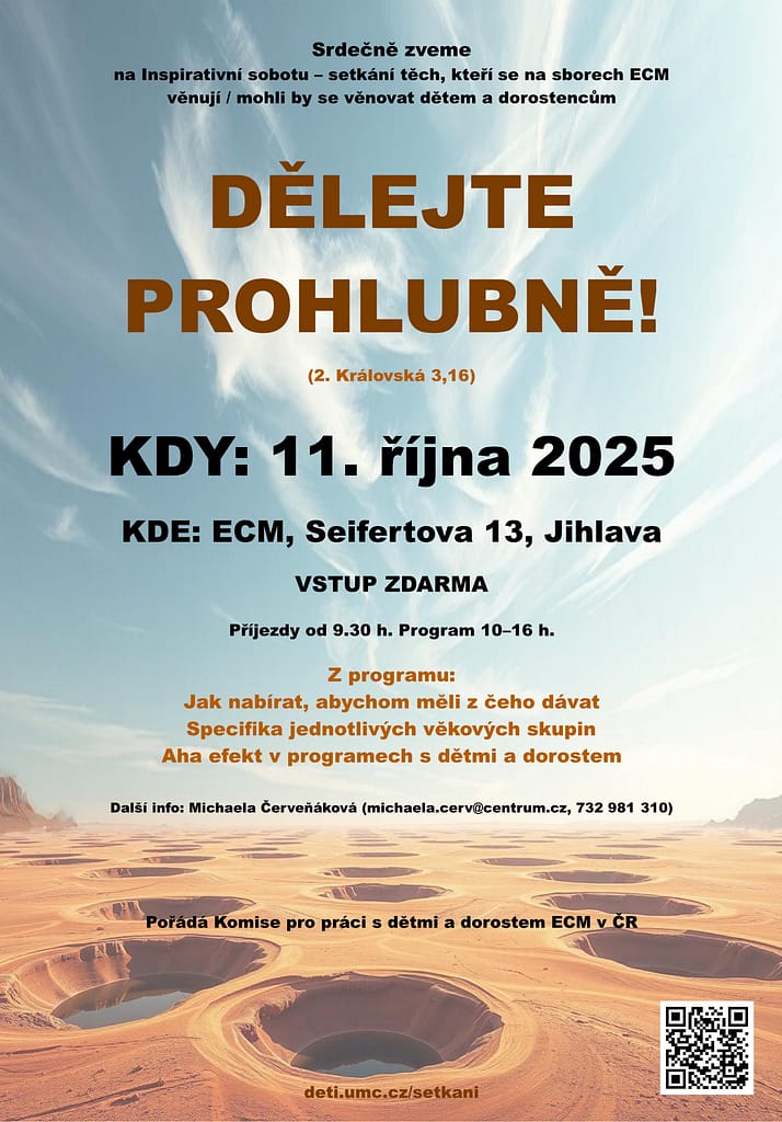 Celocírkevní setkání pracovníků s dětmi a dorostem. Inspirativní sobota. Dělejte prohlubně! (podle 2Kr 3,16) … Dělejte to, co si Bůh bude moci použít, až přijde se svým Duchem a bude chtít naplňovat, oživovat, …
