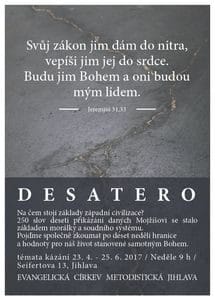 DesateroAkce07/06/201716/09/2017Na čem stojí základy západní civilizace? DESATERO je tématem nedělních kázání do 25. 6. 2017